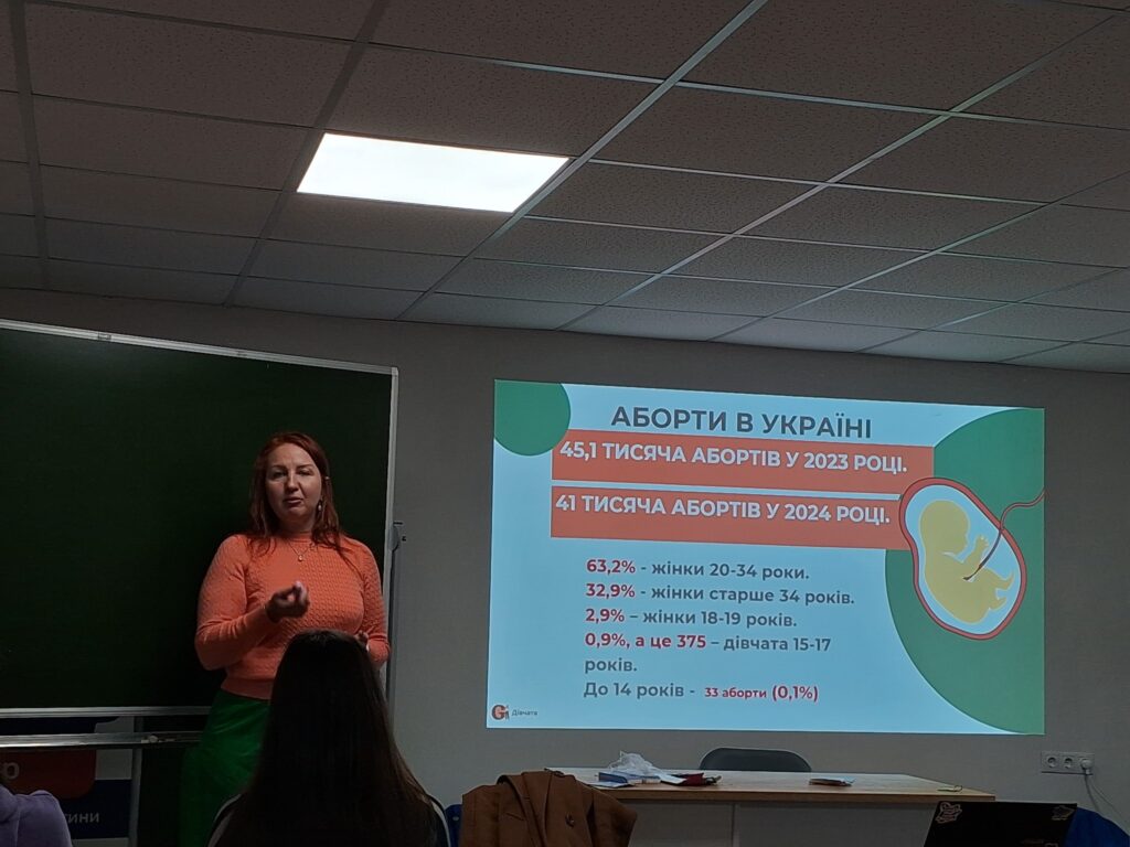 Заняття проводила Олена Дашутіна — сексологиня, тренерка зі статевого виховання та сексуальної освіти дітей і молоді, представниця ГО «Дівчата», яка була запрошена до нас з м.Києва.