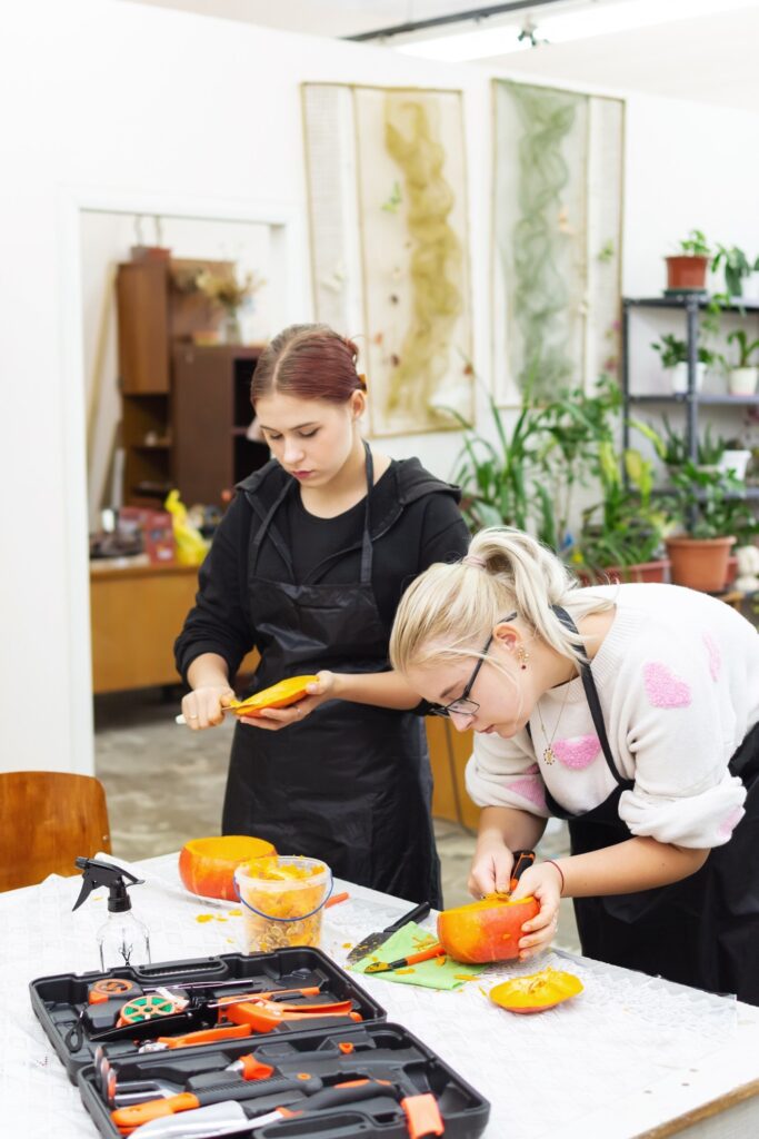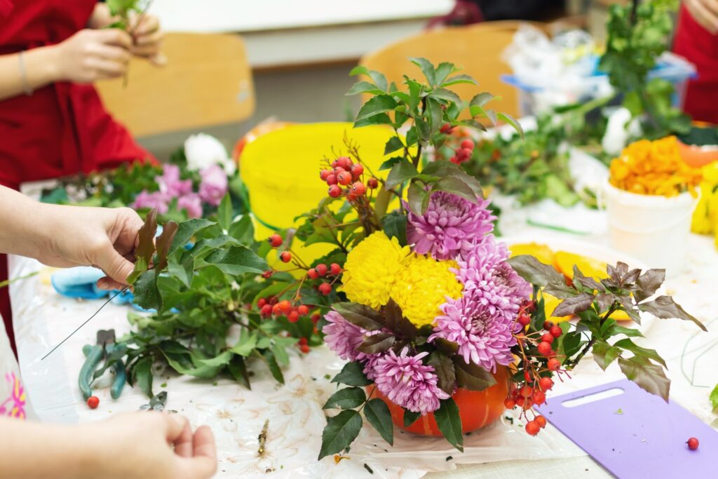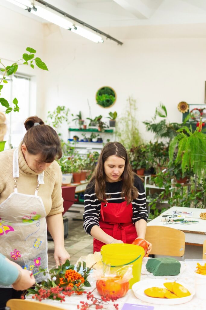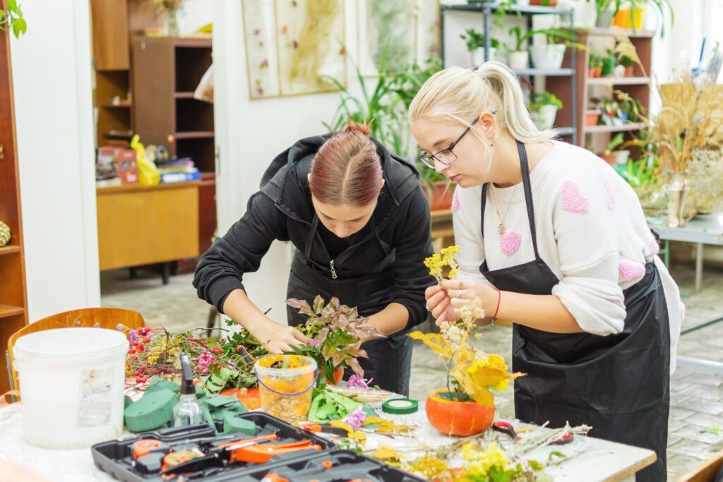 Під керівництвом майстра виробничого навчання Єременко Олени Миколаївни учасники детально ознайомилися з особливостями формування композиції, підбором сезонних матеріалів, гармонійним поєднанням кольорів та текстур. Майстер поділилася професійними секретами, продемонструвала різні технічні прийоми та підказала, як створити витвір, що передає атмосферу осені й водночас виглядає стильним та естетично довершеним.
